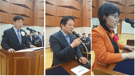 | ▲김병묵 안양시 용무도협회장 대회사·최대호 안양시장 격려사·김선화 안양시의회 의장 축사 |