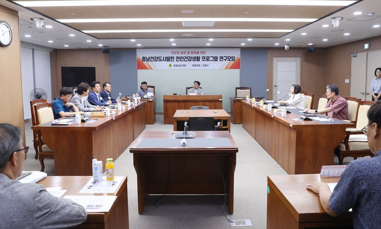 [충남 세계타임즈=백택기 기자] 충남도의회 ‘도민의 삶의 질 향상을 위한 충남건강도시발전 전인건강생활프로그램 연구모임’(대표 이철수)은 18일 복지환경위원회 회의실에서 발족식 및 1차 회의를 열고 ‘충남건강도시발전 전인건강생활프로그램 연구용역’ 착수보고회를 개최했다.