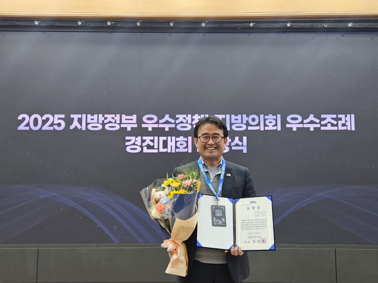 [충남 세계타임즈=이현진 기자] 안장헌 충남도의원(아산5·더불어민주당)이 14일 더불어민주당 당대표 1급 포상을 수상했다. 이는 2025년 더불어민주당 지방의회 우수조례 경진대회에서 안 의원이 대표발의한 「충청남도 노사관계 발전 지원 조례 일부개정조례」 가 최우수 조례로 선정된 것에 따른 수상이다.