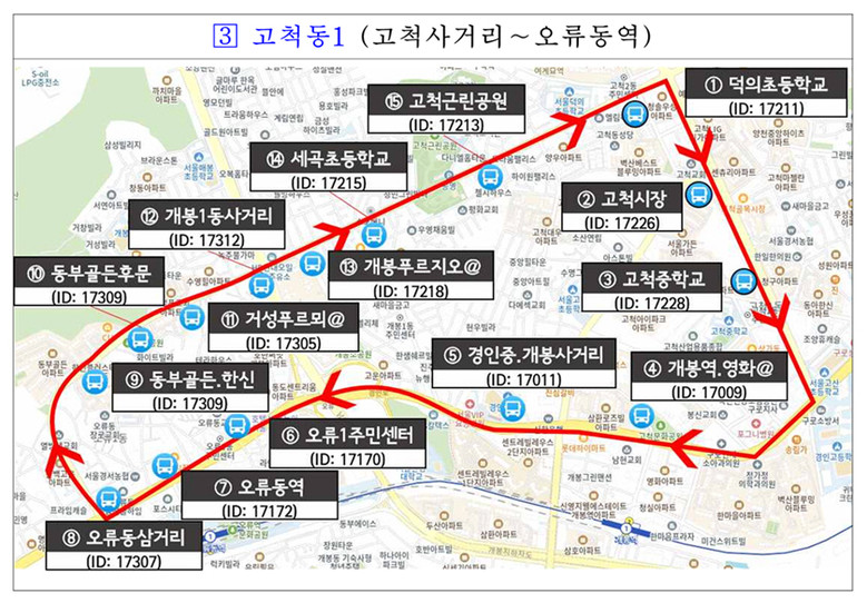운행 노선은 △구로동1(신도림역∼남구로역) △구로동2(디지털단지오거리∼구로역) △고척동1(고척사거리∼오류동역) △항동1(항동지구∼천왕역) △구로동3(디지털단지오거리∼구로디지털단지역) △수궁동1(궁동생태공원∼온수역) △항동2(항동지구∼온수역∼오류동역) 등이다.