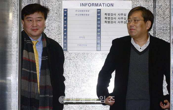 최순실 국정농단 사건을 수사하는 박영수 특검팀의 이용복(왼쪽), 양재식 특검보가 이재용 삼성전자 부회장이 구속 수감된 17일 오전 서울 강남구 대치동 특별검사 사무실로 출근하고 있다. 2017.02.17.