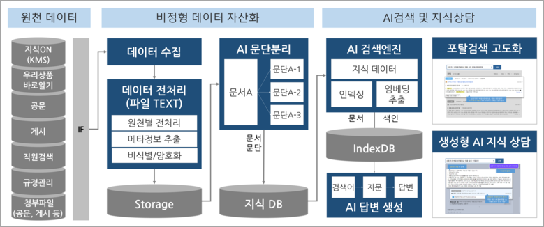 우리은행은 2022년부터 상품설명서, 규정, 공문, 게시 등 1천만 건 이상의 비정형 데이터를 AI 학습이 가능한 형태로 자산화하고, 자연어 처리 기반의 통합검색 및 상담이 가능한 시스템 구축을 추진해왔다. 이번에 선보이는 AI 지식상담 서비스를 통해 직원들이 원하는 정보에 보다 쉽고 빠르게 접근할 수 있게 됨으로써 고객 서비스의 질을 크게 높일 수 있을 것으로 기대하고 있다.