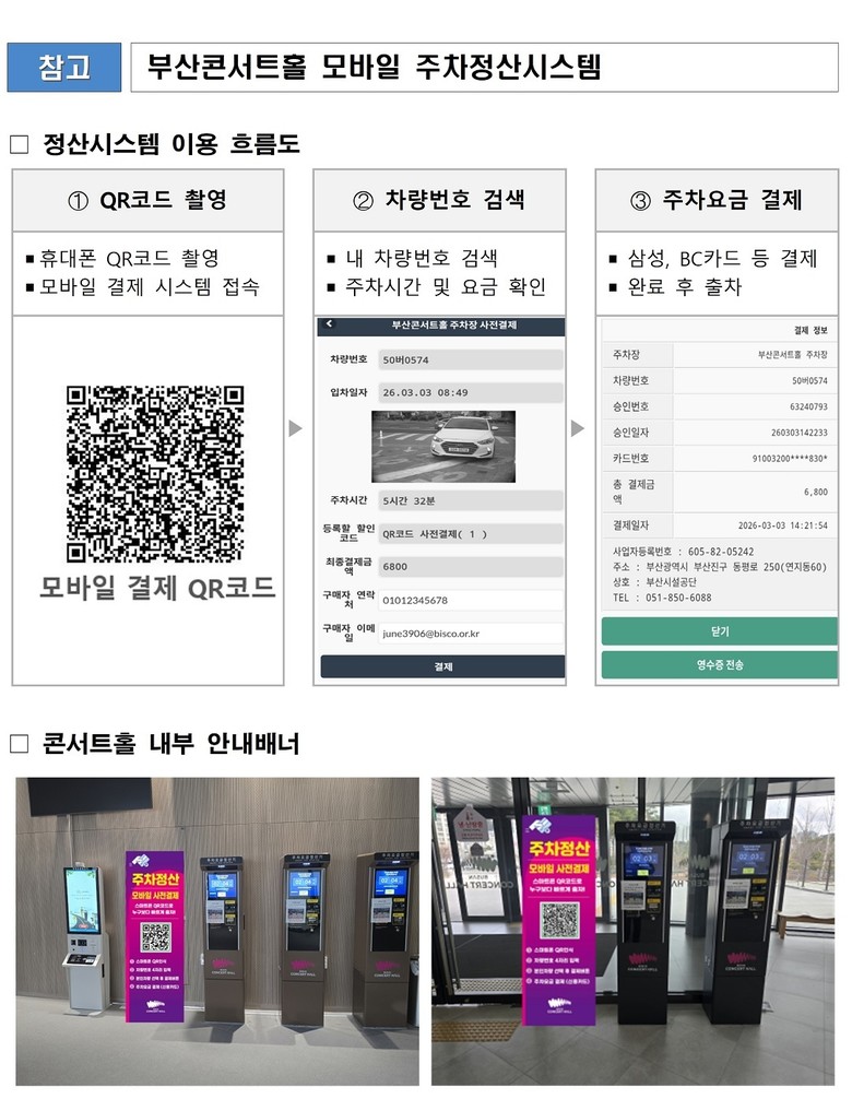 [부산 세계타임즈=이용우 기자] 부산시(시장 박형준)는 부산콘서트홀에 오는 4월 1일부터 모바일 주차정산시스템을 도입한다고 밝혔다.