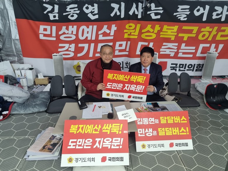 백현종 대표의원은 “지역을 불문하고 많은 분들이 관심 가져주셔서 힘이 난다”며 “진심 담긴 격려와 지지에 힘입어 ‘이증도감(李增道減·이재명표 예산은 증액, 도민 예산은 삭감)’ 행태로 경기도를 망친 김동연 지사에 대한 규탄과 함께 ‘예산 농간’을 바로잡고, 무능한 정무.협치 라인을 ‘전원 파면’하라는 우리의 요구가 관철될 때까지 투쟁하겠다”고 밝혔다.