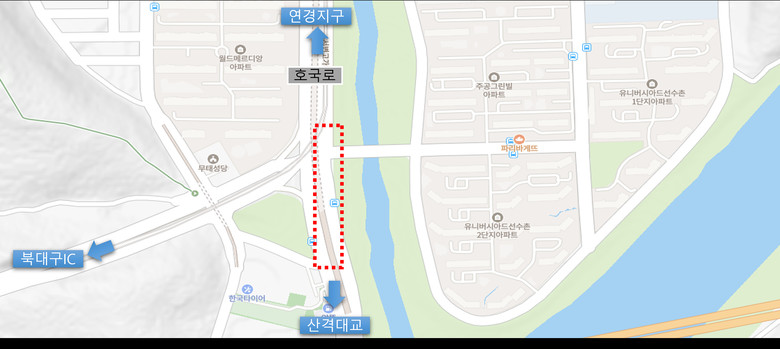 호국로(동화교 네거리)는 산격대교에서 동·서변지구 등 인근 주거지역으로 접근하려는 차량이 많지만, 직진 차량과 우회전 차량이 같은 차로를 사용하다 보니 대기 차로 부족으로 상습 정체가 반복됐다. 이에 우회전 전용차로를 추가로 확보해 방향별 차량 흐름을 분리하고, 오는 7월 말까지 공사를 마무리할 계획이다.