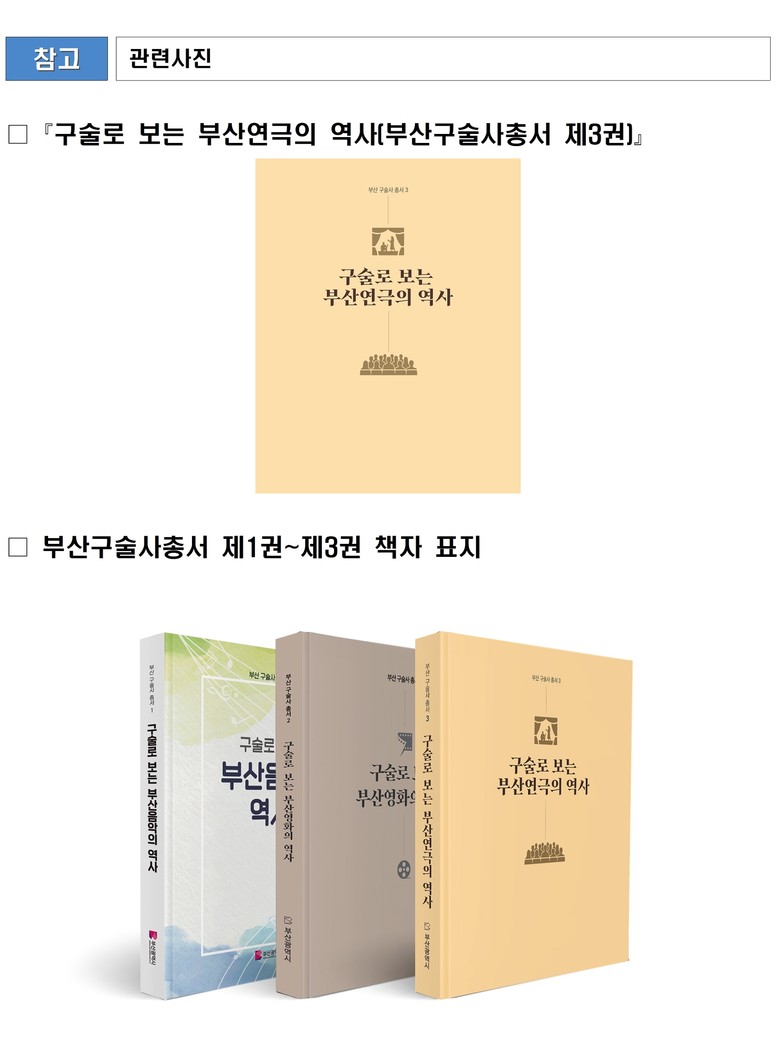 한편, 시(시사편찬실)는 부산 시민 및 연구자와 함께 부산의 역사를 만들어 가기 위해 2023년부터 부산구술사총서를 발간하였다.