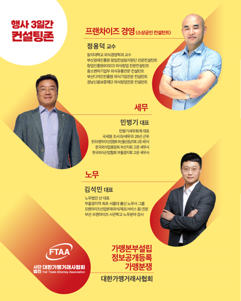 점포를 운영하고 있는 소상공인은 물론 예비 창업자, 프랜차이즈 업계에 관심 있는 시민 누구나 부담 없이 참여할 수 있으며, 현장에서 무료로 상담받을 수 있다.