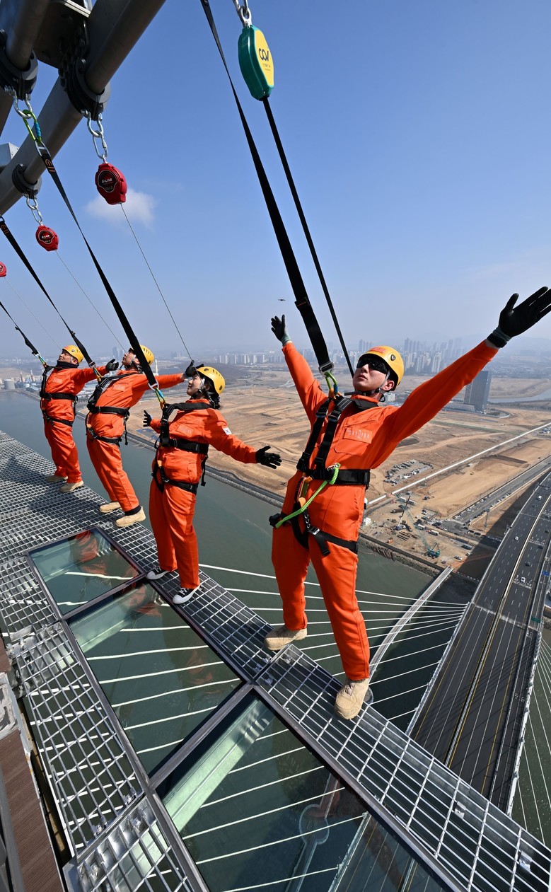 | ▲ 2026년 3월 25일 청라하늘대교에서 관계자들이 개장을 앞둔 관광시설을 점검하고 있다. |