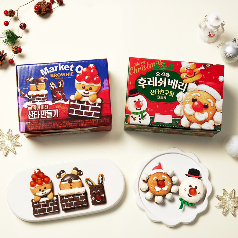 ‘후레쉬베리 산타친구들 만들기’와 ‘브라우니 굴뚝에 빠진 산타 만들기’는 후레쉬베리, 브라우니, 초코파이, 알맹이 젤리 등으로 구성된 놀이형 과자세트다. 함께 들어있는 초코펜과 장식용 토퍼를 활용해 산타와 루돌프, 눈사람 등을 가족, 연인과 재밌게 만들어 보고 맛있는 간식도 즐길 수 있다. 전국 대형마트와 온라인 채널에서 동시 판매한다.