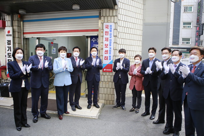 국민의힘 '이재명 판교대장동 게이트 국민제보센터'현판식에서 기념사진