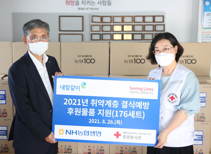 [세계타임즈 이혜원 기자]NH농협생명이 8월 26일(목) 종로에 위치한 대한적십자사 중앙봉사관에서 코로나19 취약계층을 위한 꾸러미 전달식을 실시했다.
