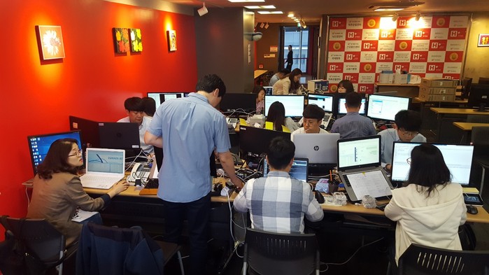 | ▲ H+양지병원과 평화이즈 관계자들이 새로운 의료정보시스템 오픈을 앞둔 5월 31일 최종 시스템 점검을 위해 분주하게 움직이고 있다. |