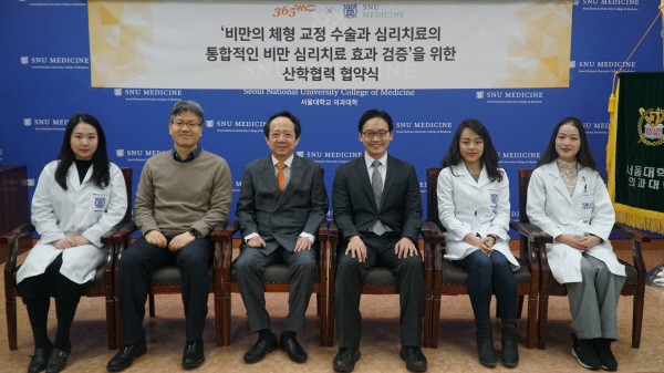 지난 15일 서울대학교 의과대학에서 365mc와 서울대학교 의과대학 최형진 교수 연구팀이 ‘비만 체형 교정술과 심리치료의 통합적인 비만 심리치료 효과 검증’을 위한 산학 협력 협약을 맺었다. 전세계의 폭발적인 비만 인구 증가로 당뇨병, 심근경색, 뇌졸중, 암 등의 만성 신체 질환뿐만 아니라 자존감 저하, 우울, 불안, 스트레스, 자살 충동, 사회성 저하 등 정신 병리적 문제들도 대두되고 있다.