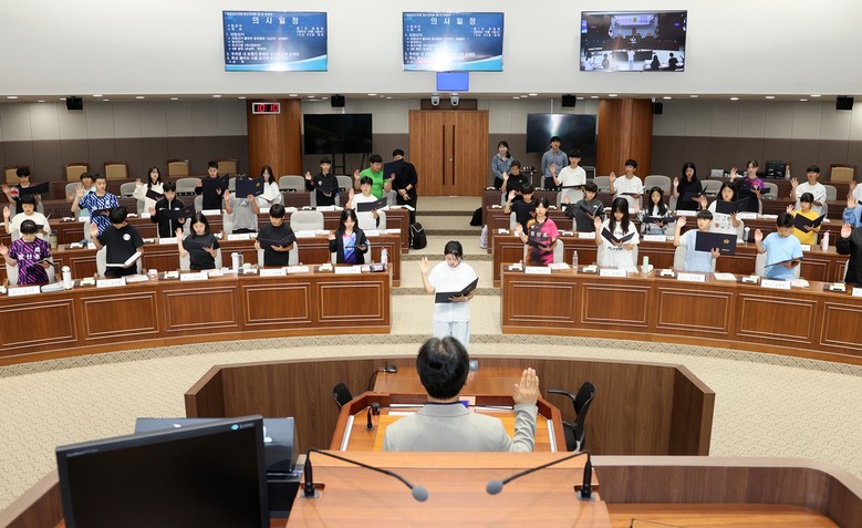 또한 학생들은 ‘주차장 내 보행자 통행로 설치’, ‘학교 물티슈 사용 금지’를 주제로 2분 발언을 진행하고, ‘주차장 내 보행자 통행로 설치에 관한 조례안’과 ‘학교 물티슈 사용 금지에 관한 조례안’ 2건을 발의했다. 특히 조례안 처리 과정에서 찬반 토론을 통해 다양한 의견을 개진하며, 도민들을 위한 정책이 만들어지는 과정을 생생하게 배웠다.