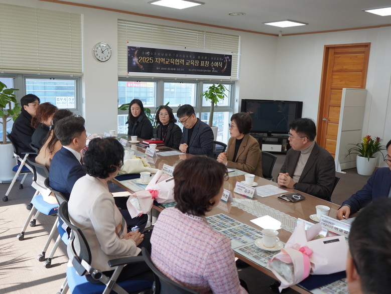 수여식에는 수상자 및 기관 관계자와 함께 구리남양주교육지원청 교육장을 비롯한 교육지원청 관계자 등 총 16명이 참석해, 표창 수여와 기념 촬영, 환담의 시간을 가졌으며 지역교육협력 성과를 공유하고 향후 협력 확대 방안에 대해 소통하는 뜻깊은 시간이 이어졌다.