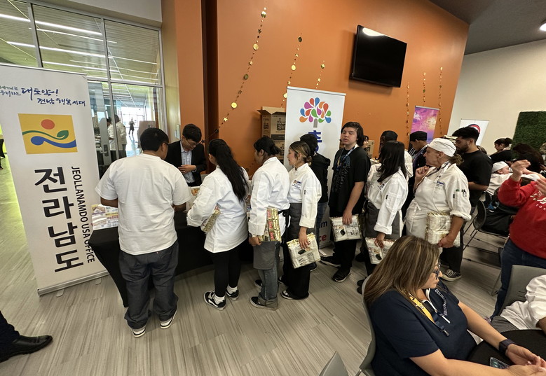 [전남 세계타임즈=우덕현 기자] 전라남도 미주사무소(소장 문창숙)는 최근 LA 한국문화원이 하버 칼리지와 개최한 ‘2025 한식 요리 경연대회(Taste of Korea)’에서 전남 농수산식품과 주요 관광지, 남도음식을 홍보했다.