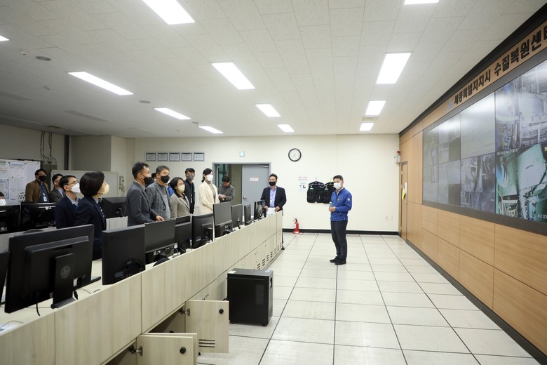 상수도통합관제센터에서는 가압장과 배수지를 비롯해 원격 누수 감시시스템, 수질 계측기, 재염소 시설 등 상수도 시설물 전반에 대한 통합 관리 운영 현황을 점검하고, 안정적인 운영을 통해 각 가정에 고품질의 수돗물을 안전하게 공급할 수 있도록 노력해달라고 주문했다.