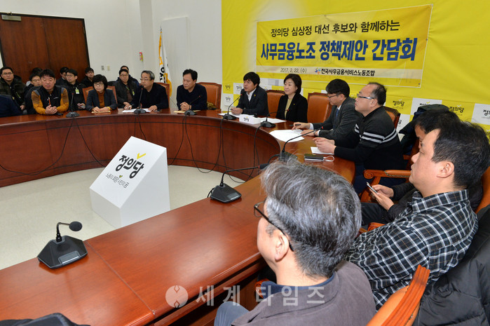 22일 오전 서울 여의도 국회 정의당 당 대표실에서 심상정 대선 후보와 함께하는 사무금융노조 정책제안 간담회가 열리고 있다. 2017.02.22.