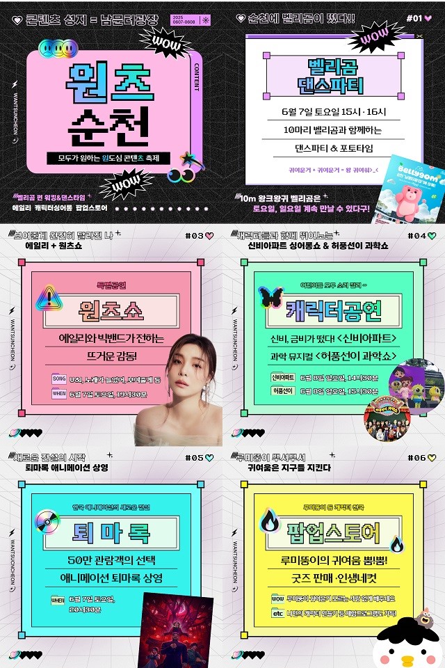 한편, ‘원츠 순천’은 ‘디즈니 싱어롱’ 외에도 벨리곰 펀 워킹, 벨리곰 댄스파티 & 포토타임, 신비아파트 싱어롱 쇼 등 다채로운 캐릭터를 활용한 프로그램을 선보일 예정이다.