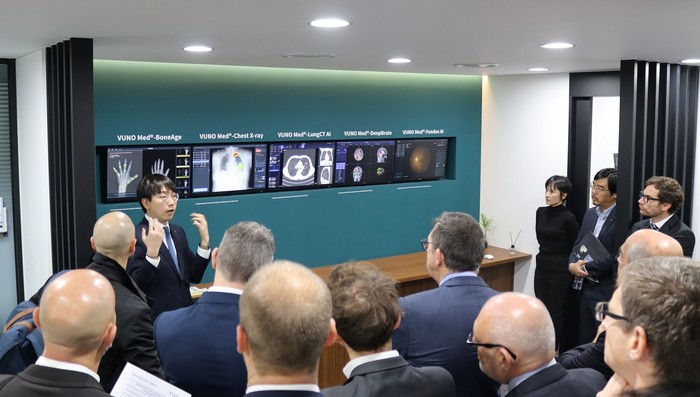 이번 방문에서 뷰노는 CEDHYS 회원들에게 식품의약품 안전처 허가를 받은 ▲뷰노메드 체스트 X레이(VUNO Med®-Chest X-ray) ▲뷰노메드 본에이지(VUNO Med®-BoneAge) ▲뷰노메드 딥브레인(VUNO Med®-DeepBrain) 뿐 아니라, 허가를 앞둔 ▲LungCT AI ▲Fundus AI를 데모시연으로 상세히 소개했다.