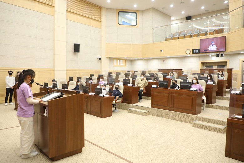 이번 의회교실에 참여한 학생들도 “의회 의사일정을 체험해 보는 유익한 시간이었다”며 “시 의원의 역할과 시의회의 기능을 이해하는 데 큰 도움이 되었고 참여 학생이 직접 중앙 단상에 서서 주장을 펼쳤던 2분 자유 발언은 특별한 추억이 될 것 같다”는 소감을 남겼다.