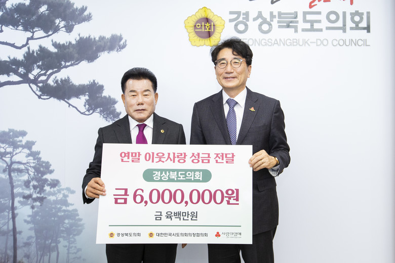 [경북 세계타임즈=한성국 기자] 경상북도의회(의장 배한철)는 12월 30일 이웃사랑 나눔의 의미를 전하고자 경상북도 사회복지공동모금회에 성금 6백만원을 전달했다.
