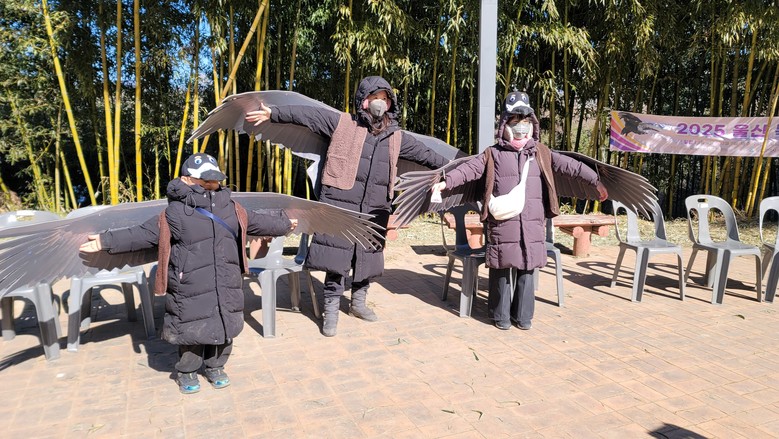 독수리학교 해설사로부터 독수리 생태에 관한 설명을 듣고 독수리 날개옷을 입고 사진 찍기, 나만의 독수리만들기 등 체험 행사도 이어졌다.