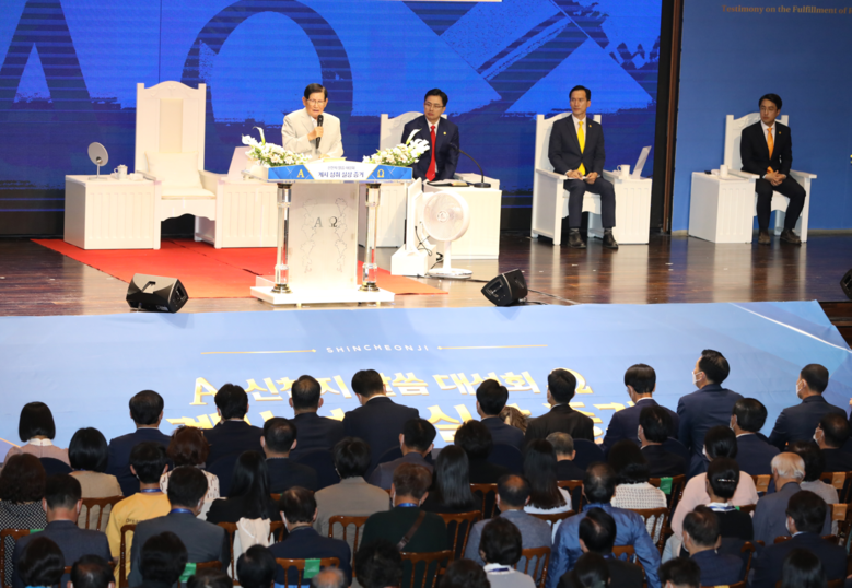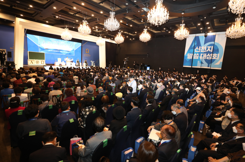이 총회장은 이날 인천 송도 라마다 호텔에서 진행된 말씀대성회에서 목회자 포함 1300 여명을 대상으로 계시록 전반을 풀어주며 바른 신앙할 것을 촉구했다. 이 총회장은 "신천지는 기록한 예언뿐만 아니라 그 이룬 실체를 증거한다"며 "계시록을 제대로 배워 성도들을 가르쳐야 한다"고 참석한 목회자들에게 호소했다.