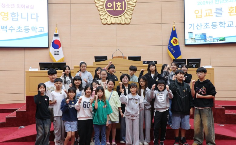 [전남 세계타임즈=우덕현 기자] 전라남도의회 오미화 의원(진보당·영광2)이 지난 10월 16일, 전라남도의회 본회의장에서 열린 청소년의회교실에 참석한 백수초(영광)와 기산초(함평) 학생들과 함께 민주주의의 가치와 의회의 역할을 배우는 시간을 가졌다.