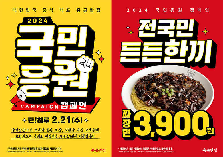 홍콩반점0410, 국민응원 캠페인 5탄 짜장면 3,900원