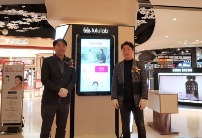 | ▲최용준 룰루랩 대표(사진 오른쪽)가 롯데 에비뉴엘 잠실점에 인공지능 뷰티 스토어를 오픈한 후 기념촬영을 하고 있다. |