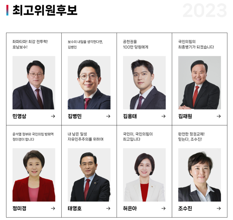 국민의 힘, 제3차 전당대회 당대표, 최고위원, 청년최고위원 후보자 발표
