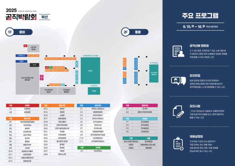 인사혁신처(처장 최동석)는 중앙행정기관, 지방자치단체, 공공기관 등이 참여하여 다양한 공직 채용 정보를 제공하는 ‘2025 공직박람회’를 15일부터 16일까지 이틀간 부산시청 1, 2층(로비)에서 개최한다고 밝혔다.