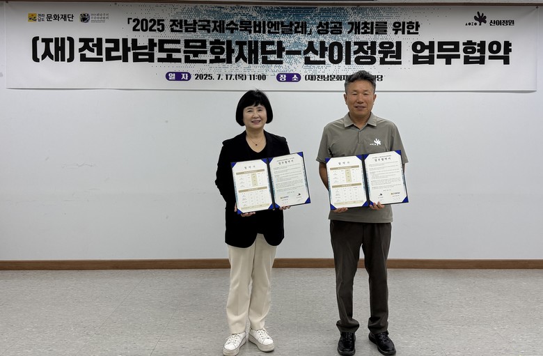 [전남 세계타임즈=우덕현 기자] 전남국제수묵비엔날레사무국은 전남도립미술관, 산이정원, 완도해양치유관리공단과 입장권 상호 할인과 공동 홍보 등 업무협약을 하고 지속 가능한 문화 협력 관계 구축에 나섰다고 밝혔다.