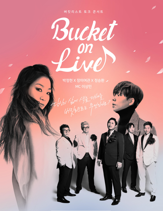 'Bucket on Live'는 고객과 더 가까이 소통하고 개개인이 가진 다양한 버킷리스트를 응원하고자 ‘나의 버킷리스트’를 주제로 진행되는 라이브 토크콘서트다. 가수 박정현, 장미여관, 정승환이 출연해 감미로운 라이브 공연을 선사하며, MC로는 가수 이상민이 방청 온 관객의 버킷리스트를 주제로 즉석토크를 진행하는 등 재치 있는 입담으로 공감을 이끌어 낼 계획이다.