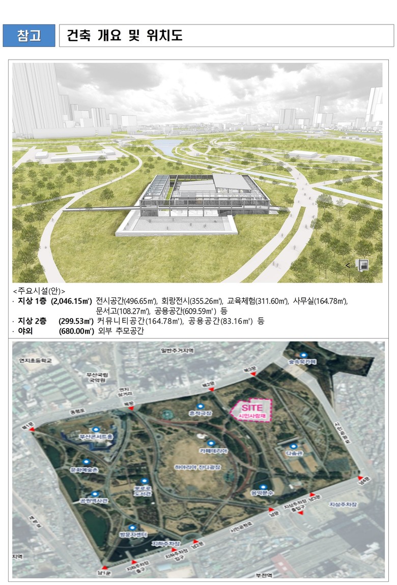 건축 설계는 부산 독립운동의 역사성과 상징성을 부각하는 동시에, 기념관이 부산시민공원 내에 있는 특성을 살려 시민 접근성을 고려한 과거와 미래를 잇는 소통형 공간으로 공원 방문객이 자연스럽게 유입되도록 설계할 예정이다.