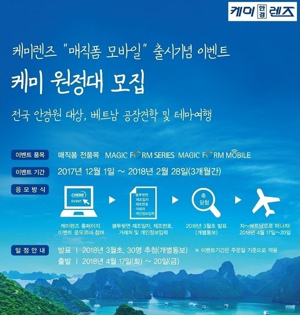 국내 안경렌즈 선도기업 케미렌즈(대표 박종길)가 전국의 안경사를 대상으로 3박4일의 베트남 공장 견학 이벤트를 진행한다.
