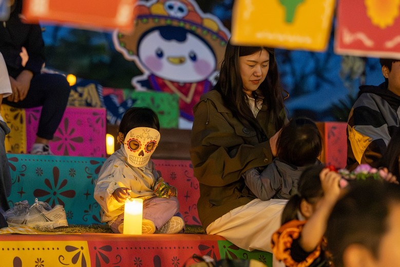 이날 행사에서는 ‘해골가면 만들기’, ‘페이스페인팅’, ‘머리꽃 장식 만들기’ 등 세대가 함께 즐길 수 있는 체험 프로그램이 운영됐으며, 마리골드 꽃길과 해골 조형물, ‘파펠 피카도(papel picado)’로 꾸며진 현장은 관람객들의 발길을 사로잡았다.