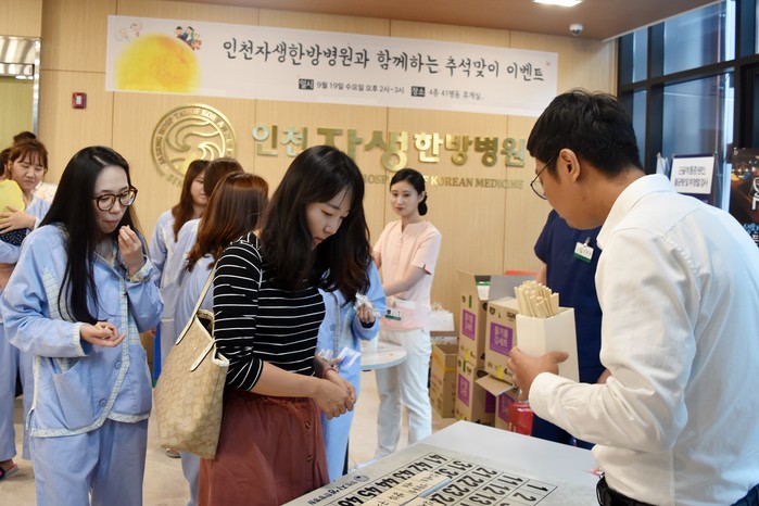| ▲인천자생한방병원 환자들이 추석 맞이 이벤트를 즐기고 있다. |
