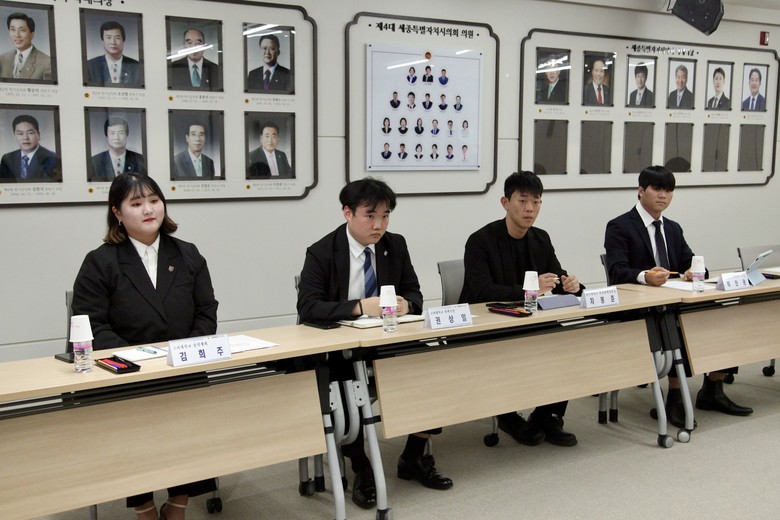 [세종 세계타임즈=이채봉 기자] 세종특별자치시의회 최원석 의원(도담동, 국민의힘)은 18일 시의회 대회의실에서 지역대학 총학생회와의 정책 간담회를 개최했다. 이날 최 의원은 축제 등 행사 추진 시 관내 대학 청년 참여 방안 및 애로사항을 청취하고 지원 방안을 논의했다.