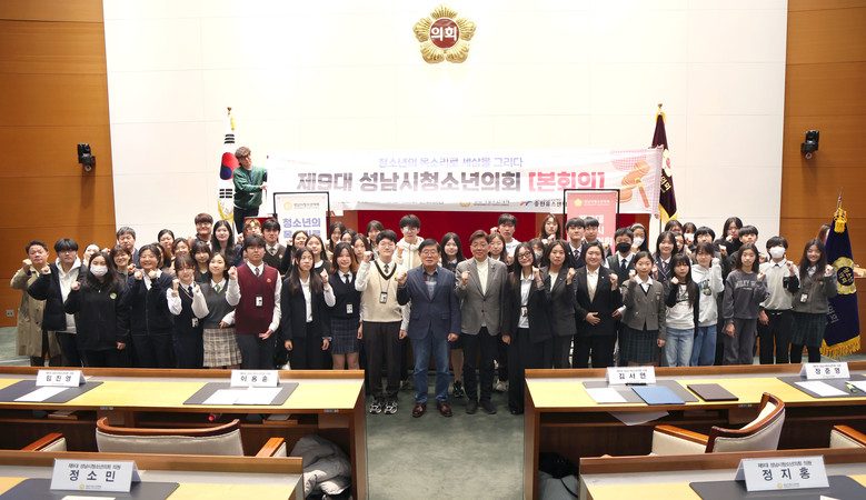 [성남시 세계타임즈=송민수 기자] 성남시의회(부의장 안광림을 비롯한 의원들)는 15일 의회 2층 본회의장에서 열린 제9대 성남시청소년의회 본회의에 참석해 청소년의회의 공식 활동을 응원했다. 이날 본회의에는 청소년의원들이 직접 참여해 그동안 준비한 안건을 논의하며 의정 경험을 쌓는 시간을 가졌다.