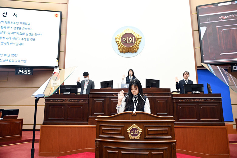 [경남 세계타임즈=최성룡 기자] 경상남도의회(의장 최학범)는 25일 도의회 본회의장에서 ‘제4회 경상남도의회 청소년 모의의회’를 개최했다.