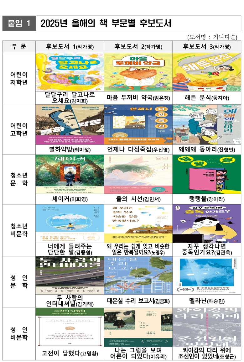 분야는 어린이(저학년·고학년), 청소년(문학·비문학), 성인(문학·비문학) 등 총 6개 분야이다.