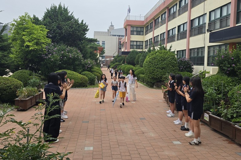 구리여중 학생들은 새음학교 학생들이 등교하는 첫날 ‘등교맞이’를 하며 낯선 환경에서 편안하게 지낼 수 있도록 반겨주고 생활 안내 도우미를 자처하여 서로에 대한 배려와 협력을 실천했다. 이는 그동안 학교에서 꾸준히 진행해 온 인성교육(2025 구리여중 인성브랜드 ‘더불어 행복한 주(주도성).인(인성).공(공동체성)’)의 실천적 결실이기도 하다.