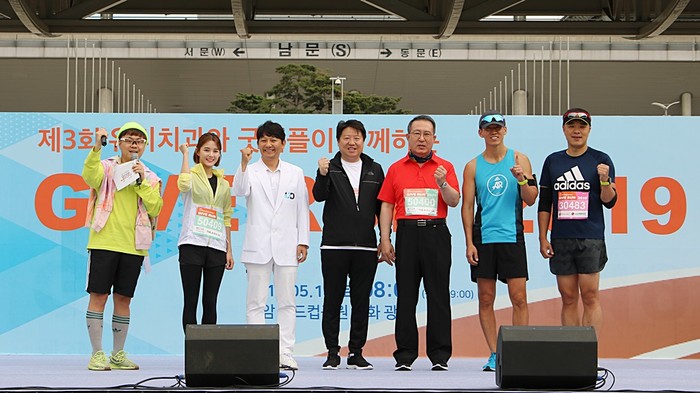 지난 18일 유디치과는 서울 상암동에 위치한 월드컵공원 평화의 광장에서 진세식 유디치과협회장, 김종명 ㈜유디 사장을 비롯해 김천수 (사)굿피플인터내셔널(이하 굿피플) 회장 등 주요내빈 9명, 그리고 마라톤을 사랑하는 일반인 약 4000여 명이 참석한 ‘제3회 유디치과와 굿피플이 함께하는 GIVE RUN 2019’를 주관·후원했다.