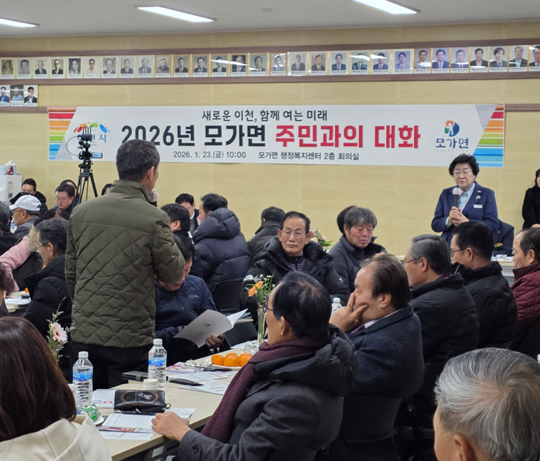 [이천시 세계타임즈=송민수 기자] 모가면(면장 박정병)은 김경희 이천시장이 1월 23일 오전 10시, 모가면행정복지센터 2층 회의실에서 “2026년 모가면 주민과의 대화”를 개최했다고 밝혔다.