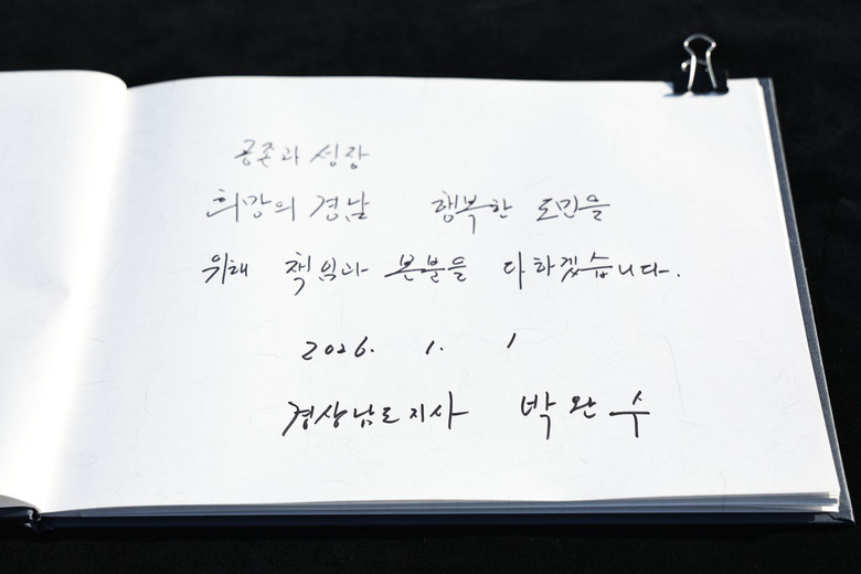 박완수 도지사는 1월 1일 오전 천성산 해맞이 행사에 참석해 1,600여 명의 도민과 함께 일출을 맞이하며 “2026년은 도민 행복이 실질적으로 도약하는 원년이 될 것”이라고 밝혔다. 이어 “천성산의 힘찬 기운을 받아 도민 여러분의 가정에 행복이 가득하고 소망하시는 모든 일이 이루어지길 기원한다”며 새해 인사를 전했다.