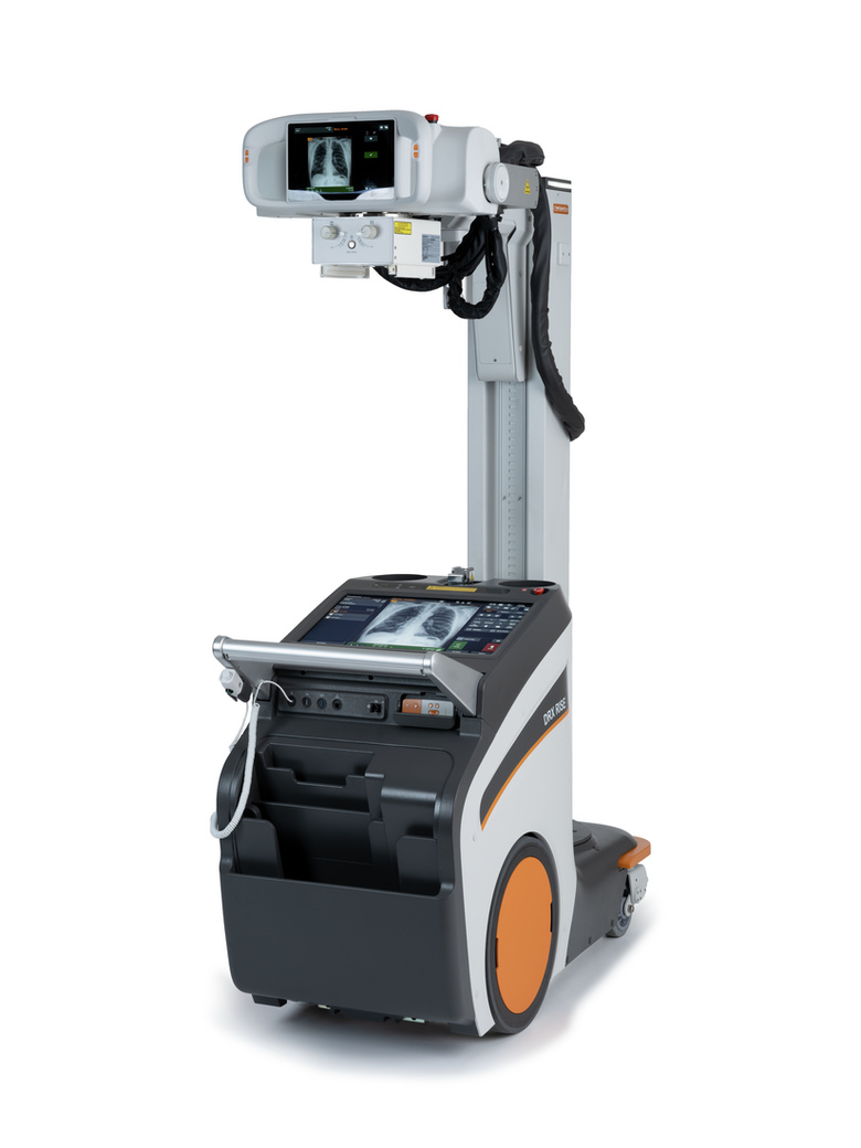 DRX-Rise는 최첨단 리튬이온 배터리를 장착해 짧은 충전 시간에도 촬영이 가능한 것이 특징이다. 여기에 듀얼 터치스크린 디스플레이를 적용해 두 개의 화면을 통한 영상 진단 작업이 가능하도록 설계해 의료진의 사용 편의성을 높였다.