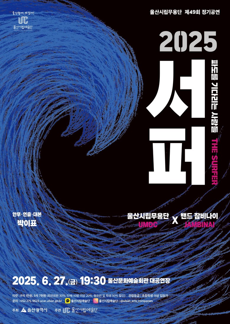 울산시립무용단 특유의 유려한 춤사위와 유쾌한 정서가 더해져, 파도를 기다리는 서퍼들의 낭만적 태도를 예술적으로 풀어냈다.