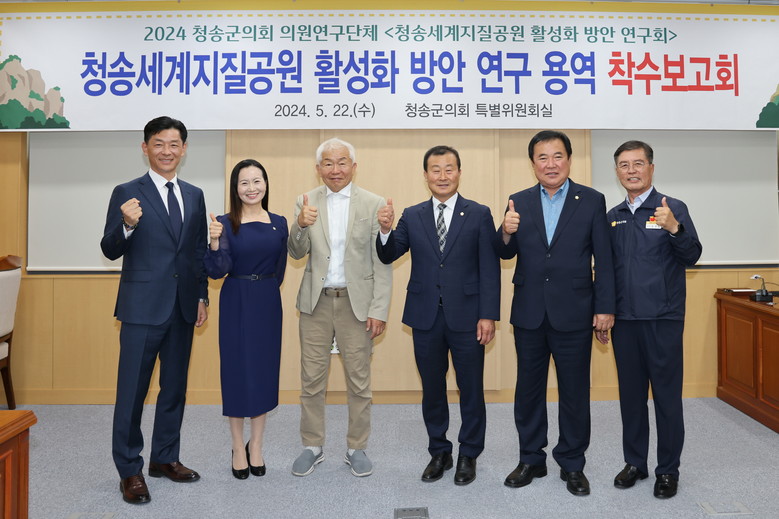 [세계타임즈=청송군 한윤석 기자] 청송군의회 의원연구단체 '청송세계지질공원 활성화 방안 연구회'는 22일 청송군의회 특별위원회실에서 「청송세계지질공원 활성화 방안 연구 용역」 착수보고회를 개최했다.